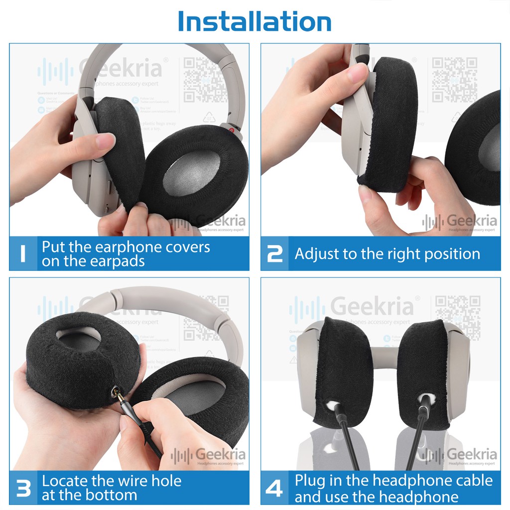 Geekria 2 คู่ถัก Earpad สําหรับ Sony WH-1000XM6 WH-1000XM5 1000XM4 แผ่นรองหูฟัง,ล้างทําความสะอาดได้และยืด Earcup Protectors (M/สีดํา)