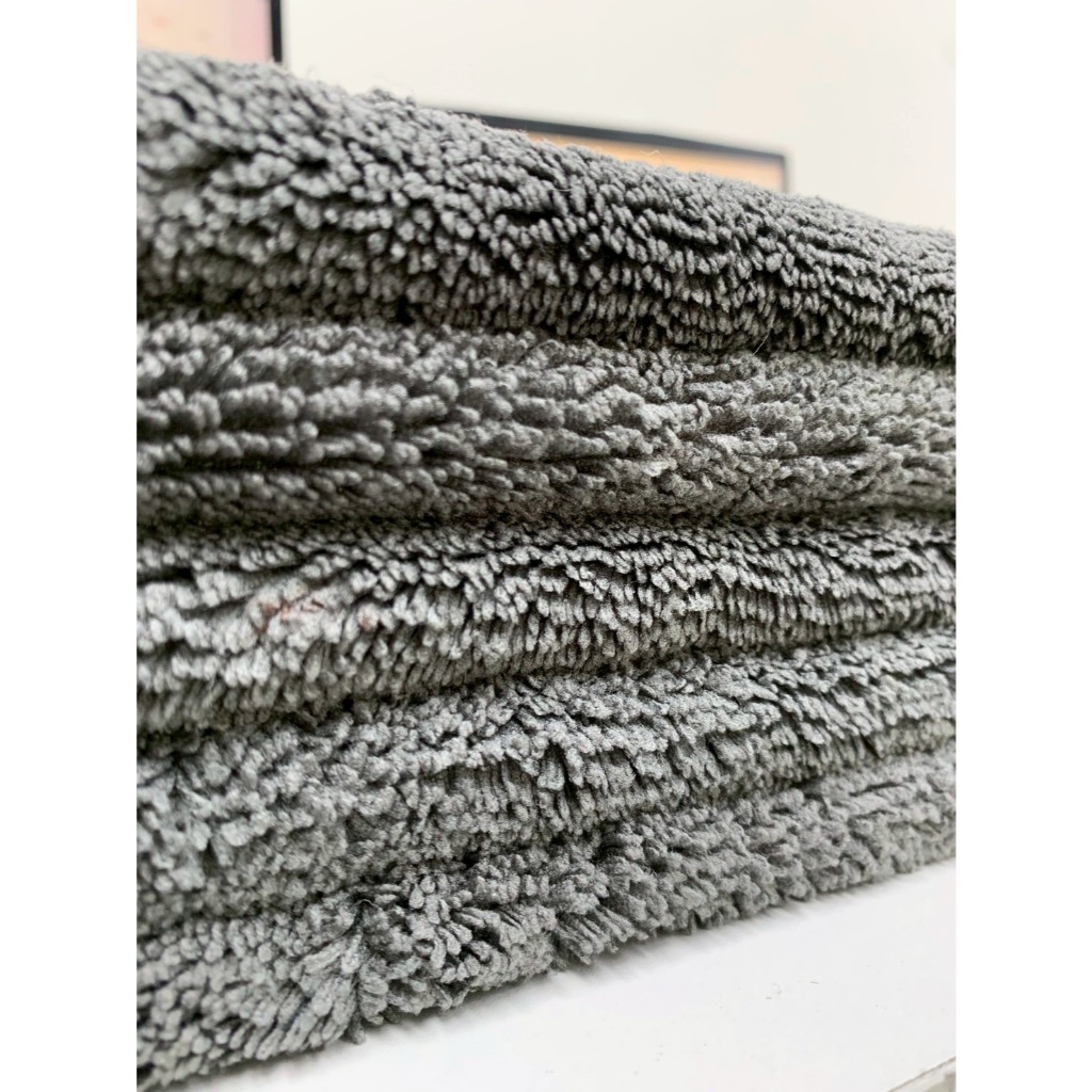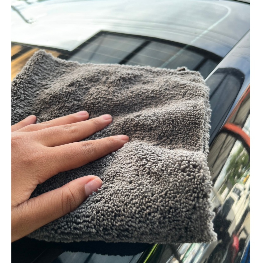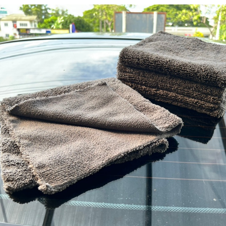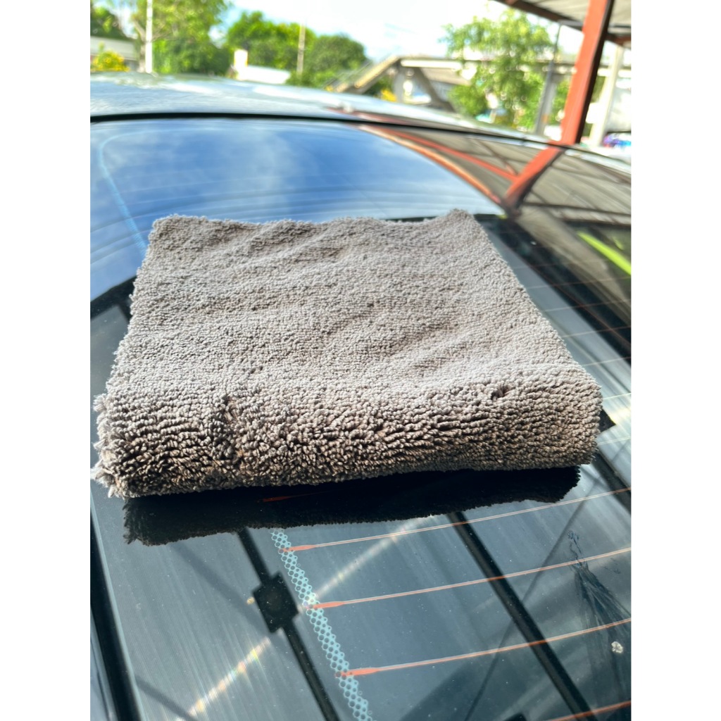 ผ้าเช็ดรถ ผ้าเช็ดแวกซ์ ผ้าไมโครไฟเบอร์ ไร้ขอบสีเทาดำ Dual Piles 40*40 ซม. 350GSM