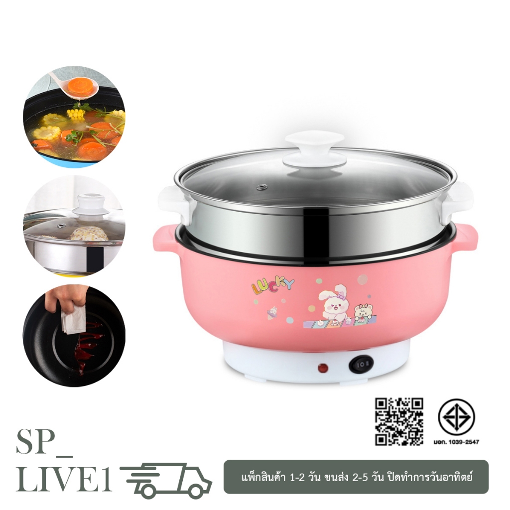 หม้อไฟฟ้า 22cm หม้อเทฟล่อน ผัด ต้ม สุกี้ ชาบู