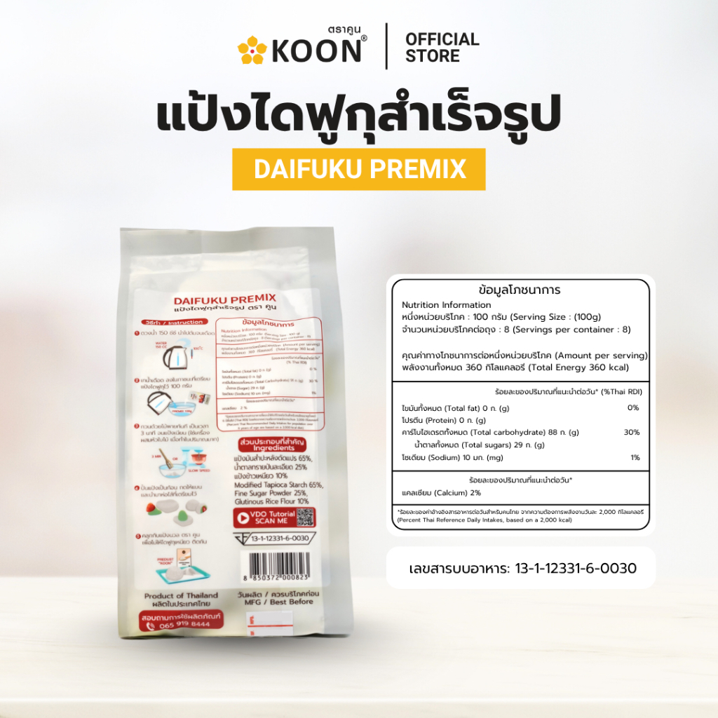 แป้งไดฟูกุสำเร็จรูป ตรา KOON (คูน) ขนาด 800 กรัม แป้งนุ่ม หนึบ ใช้ง่ายแค่เติมน้ำร้อน