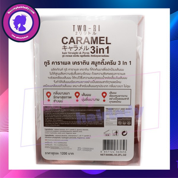 Two-ri ครีมยืดผม ทูริ เคราติน คาราเมล หอม ยืดตรง เป็นธรรมชาติ เงางาม (800ml.x2) ยายืดผม ผมตรงเรียบ ยาว เป็นธรรมชาติ
