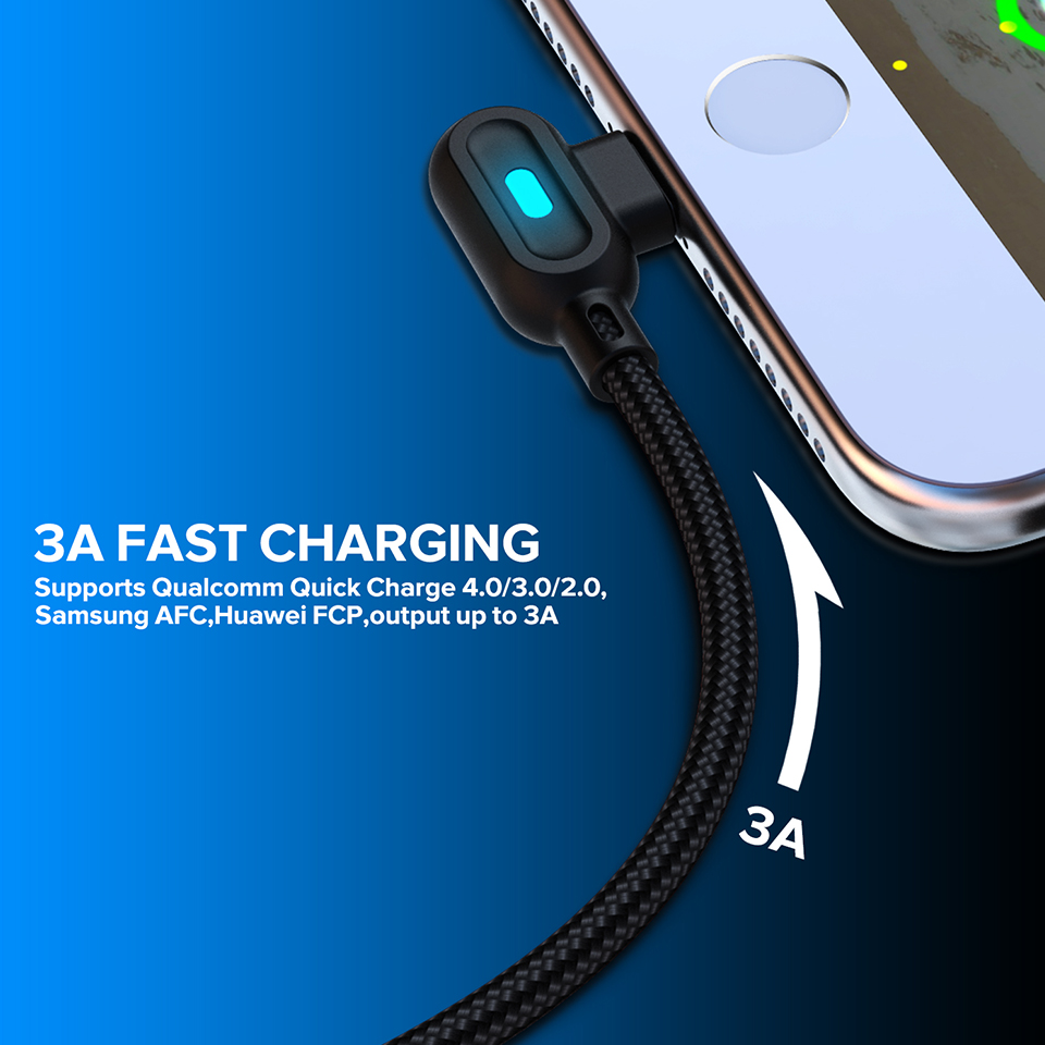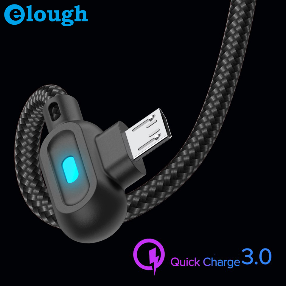 Elough สายชาร์จเร็ว 90 องศา Micro Usb Cable Data Cords สีด ําสีแดง 1 ม .