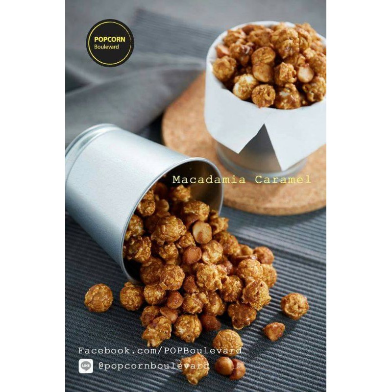 POPCORN Boulevard - Macadamia Caramel ป๊อปคอร์นคาราเมลใส่ถั่วแมคคาเดเมีย ขนาด 200 กรัม