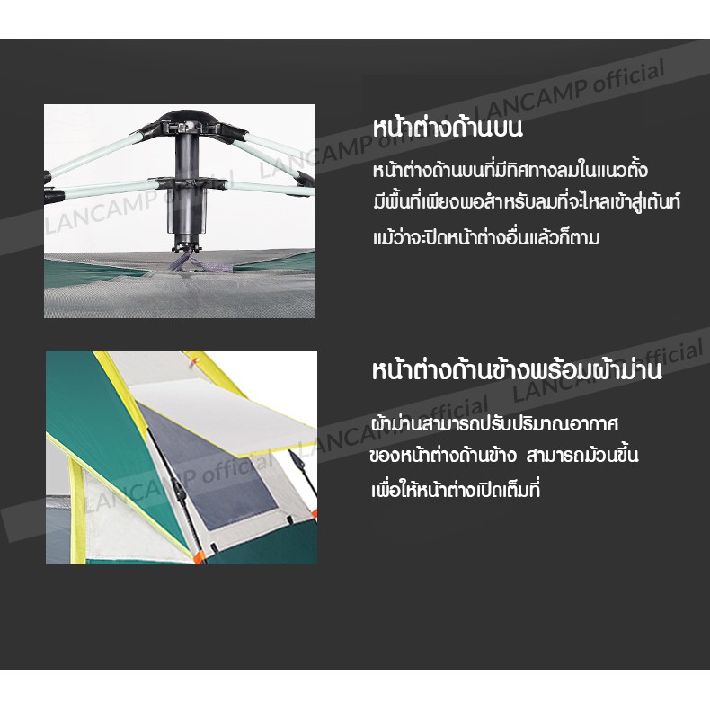 Lancamp เต้นท์ เต๊นท์ เต้นท์กางอัตโนมัติ 1ประตู 3หน้าต่าง