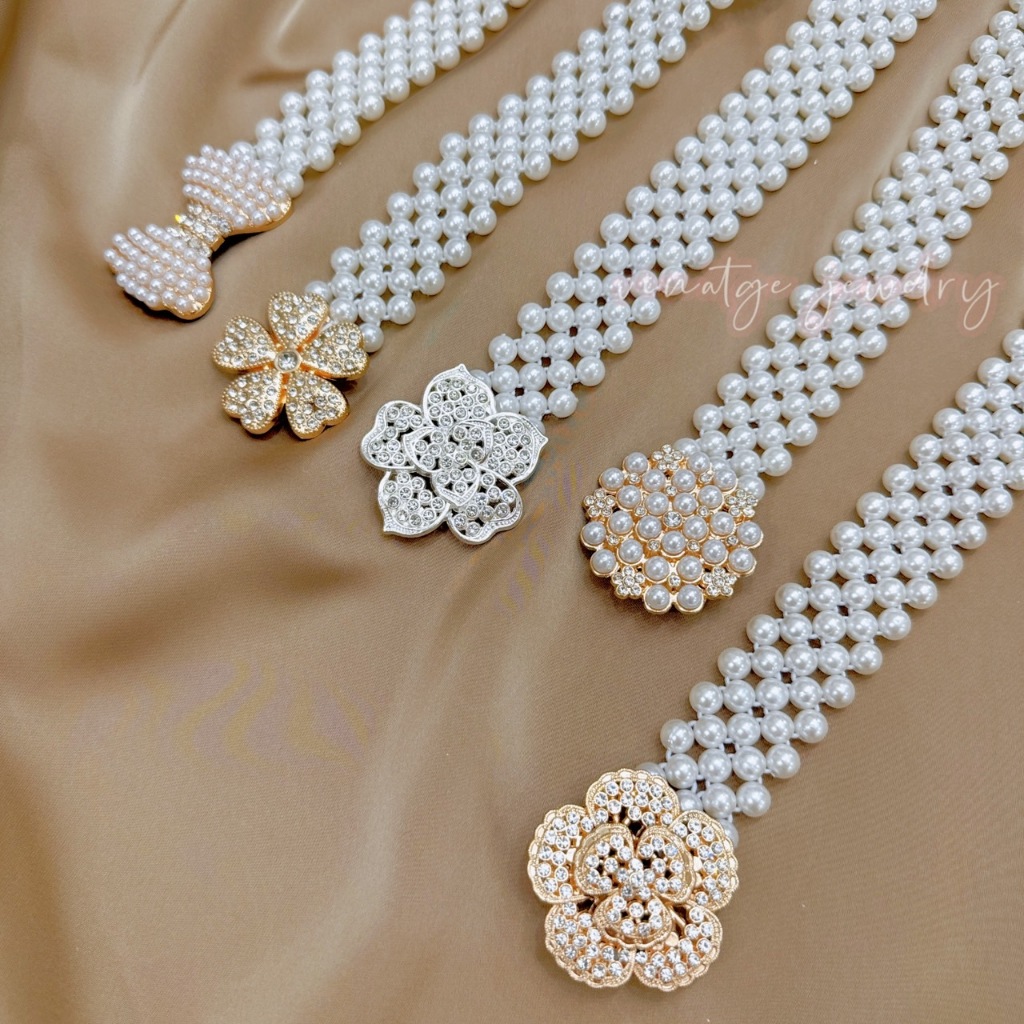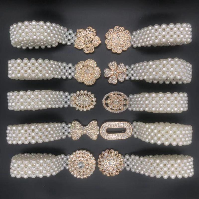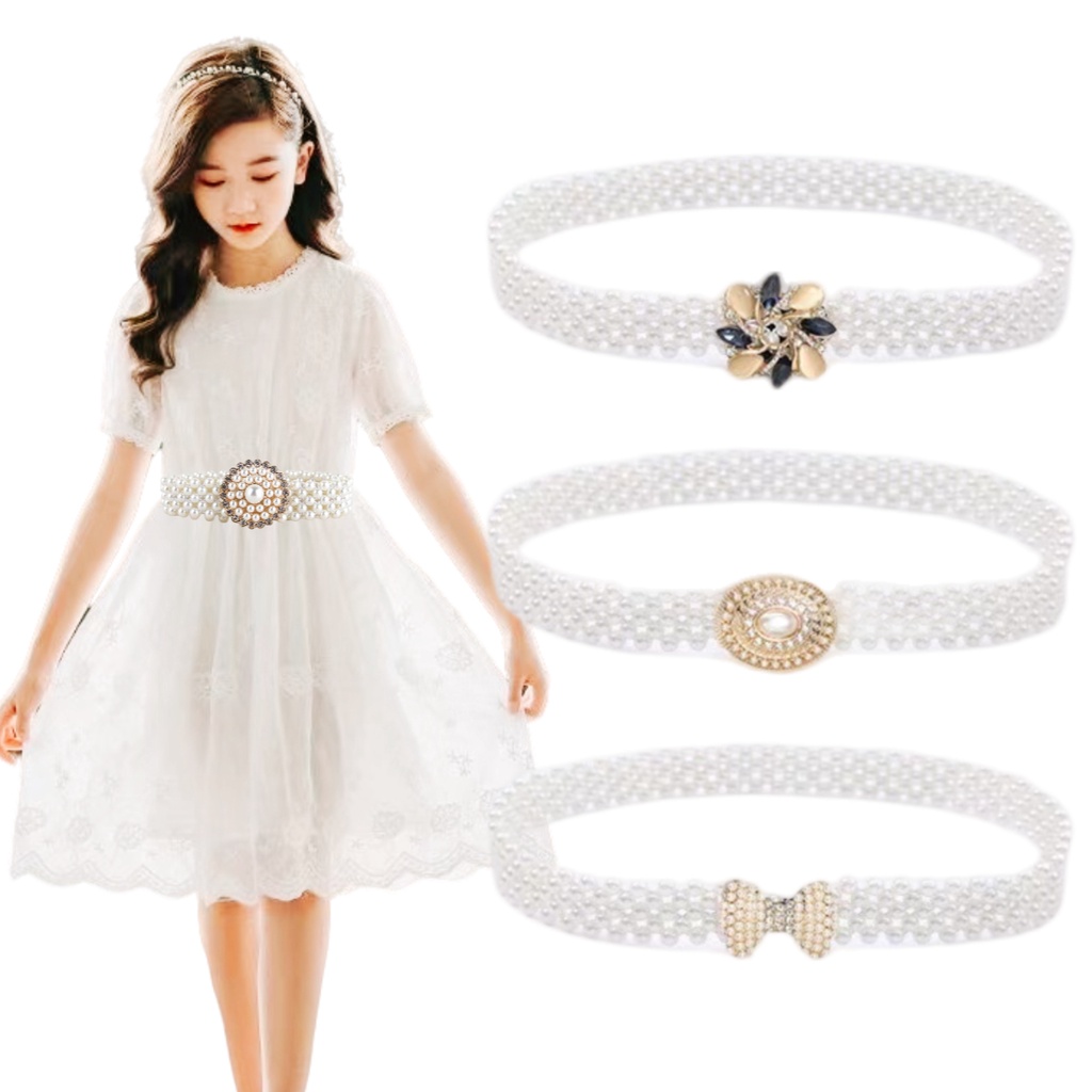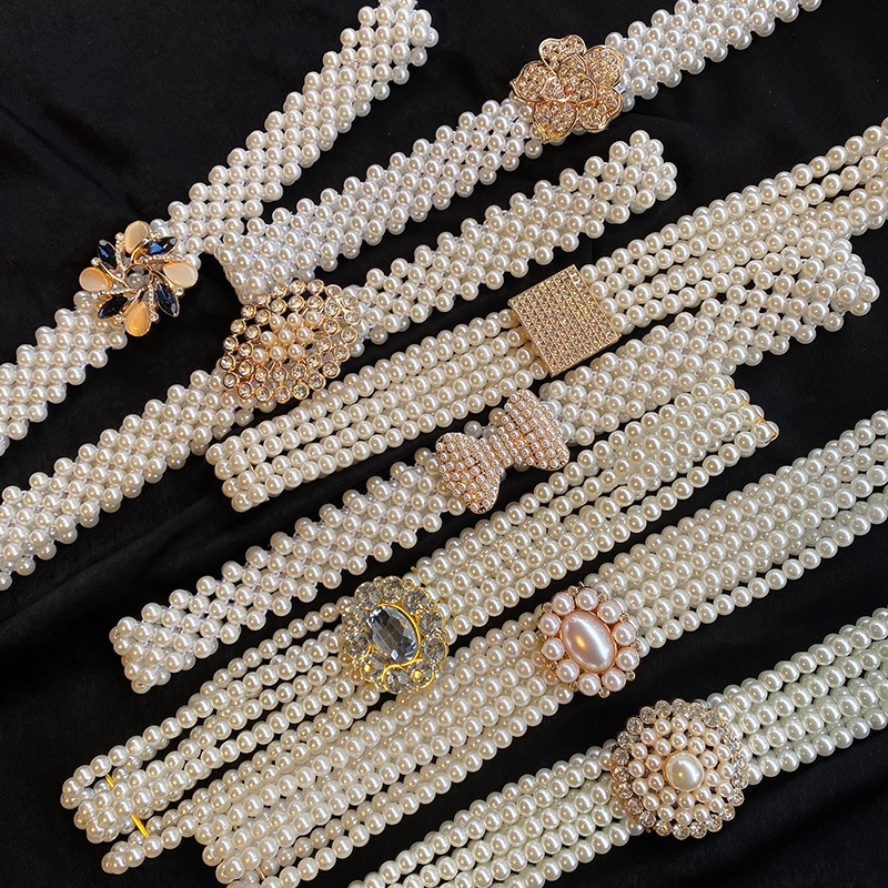 นางสาว แฟชั่น เข็มขัดไข่มุก เข็มขัดดอกไม้ทอโซ่มุก เด็กใส่ได้
