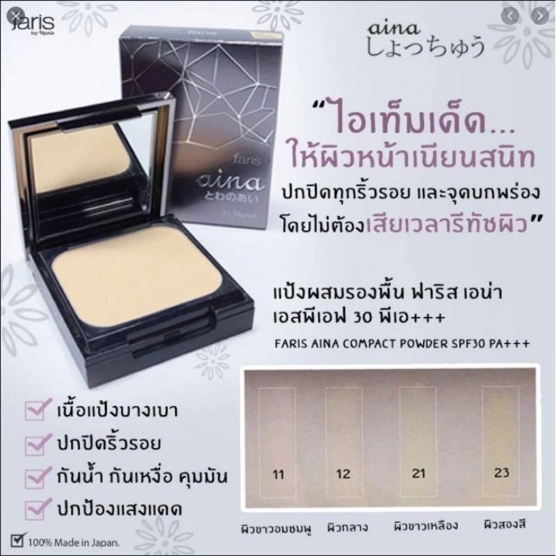 แป้งตลับ ฟาริส เอน่า เพอร์เฟ็ค สกิน ฟาวด์เดชั่น พาวเดอร์ เอสพีเอฟ 30 พีเอ+ Faris Aina compact powder