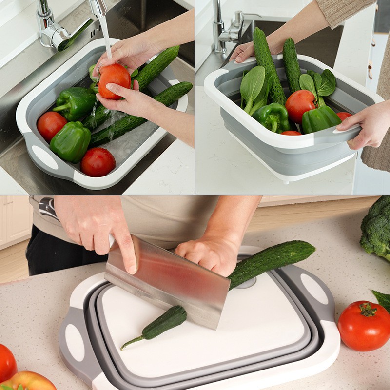 YOTAI เขียงซิลิโคน อเนกประสงค์ กะละมังพับได้ เขียงอเนกประสงค์ 3in1 ล้าง หั่น พับเก็บ ระบายน้ำได้ พับเก็บสะดวก ใช้ดีมาก