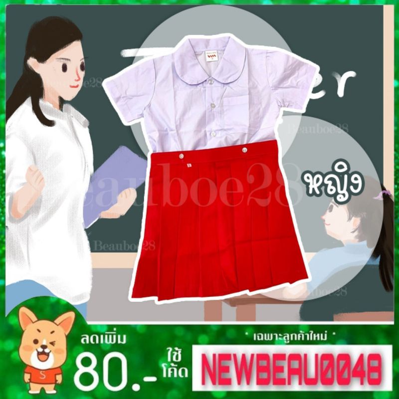ชุดอนุบาล ชุดนักเรียน woodman สีเเดง