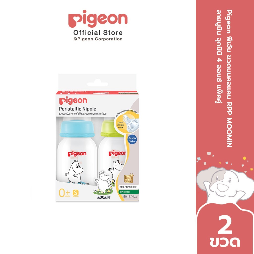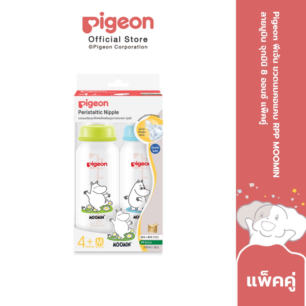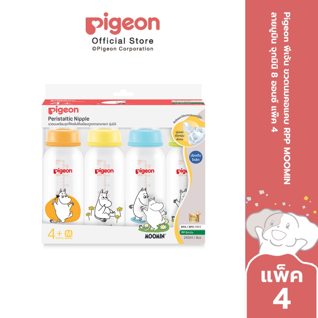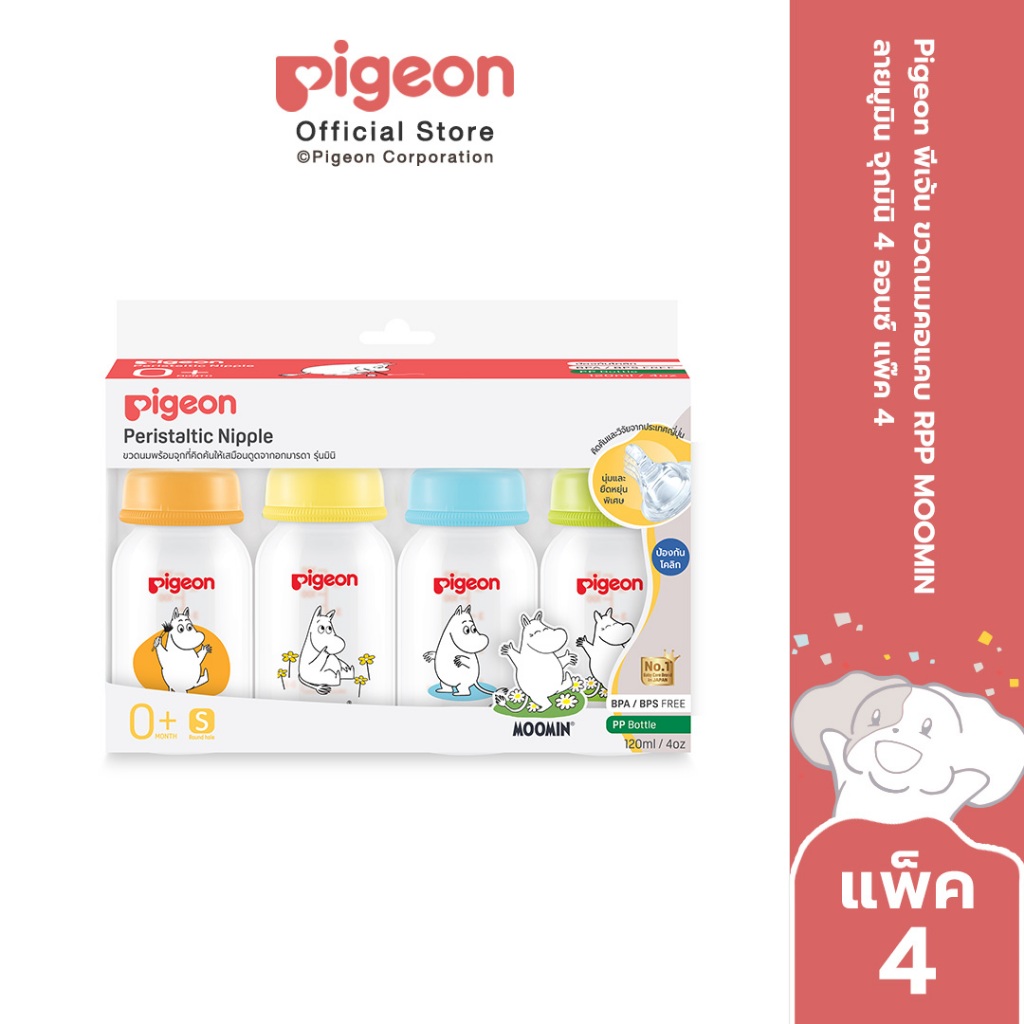 Pigeon พีเจ้น ขวดนมมาตรฐาน RPP MOOMIN ลายมูมิน จุกมินิ 4ออนซ์ และ 8ออนซ์ แพ็ค4