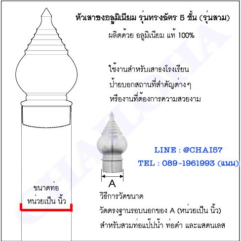 !!พร้อมส่ง!! หัวเสาธงอลูมิเนียม ใส่แป็ปกลมประปา ทรงฉัตร 5 ชั้น