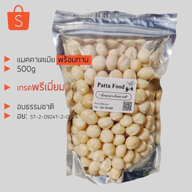 แมคคาเดเมีย[พรีเมี่ยม] 500 กรัม ตรา PATTA อบ สด ใหม่ พร้อมทาน!! macadamia เต็มเม็ด แมคคา