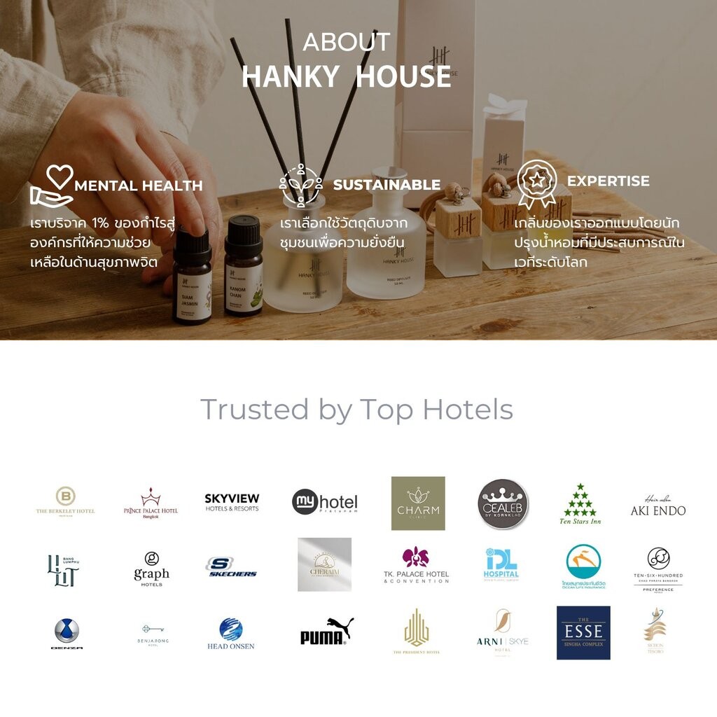 Hanky House รีฟิลก้านไม้หอม อโรม่า Refill Aroma Reed Diffuser 500มล น้ำมันหอมระเหย กลิ่น โรงแรมห้าดาว Reed_500