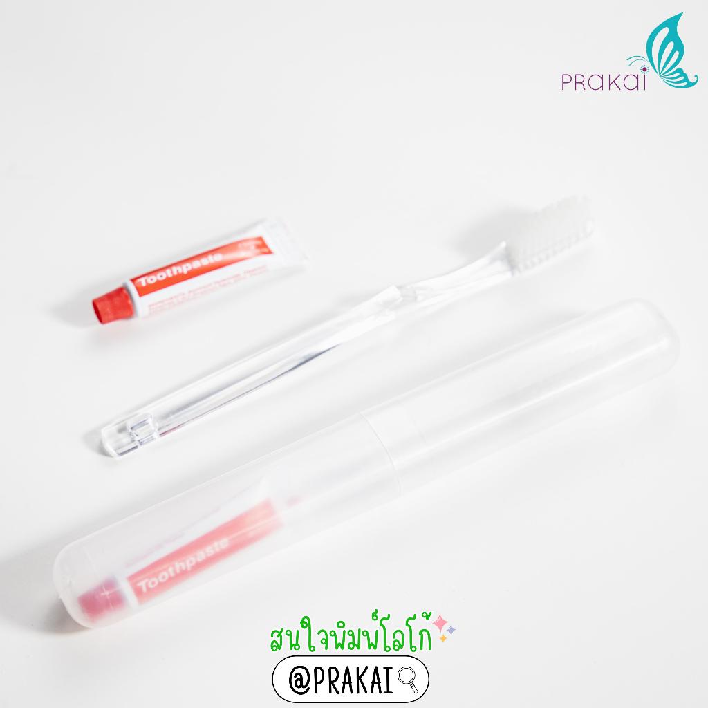 PRAKAIVANICH กล่องเก็บแปรงสีฟันพกพา ใส่พร้อมแปรงสีฟันใส แปรงสีฟันฟางข้าว ย่อยสลายได้+ยาสีฟัน 5 กรัม