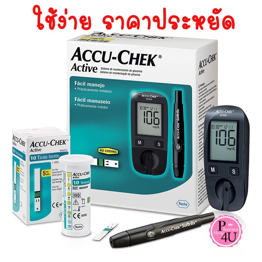 Accu-Chek Active แอคคิว-เช็ค แอคทีฟ เครื่องวัดน้ำตาล [ 1 เครื่อง ] ของแถมเพียบ #6736
