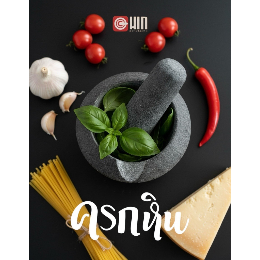 พร้อมส่งสีใหม่🔥Hin Mortar รุ่น Original ครกหิน 7 นิ้ว ครกหิน พร้อมสากอย่างดีหินแท้100% ครกหินทันสมัย