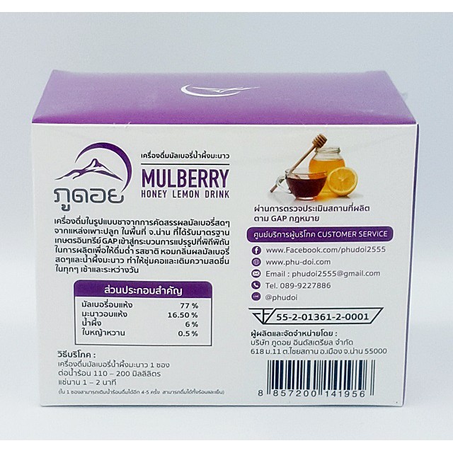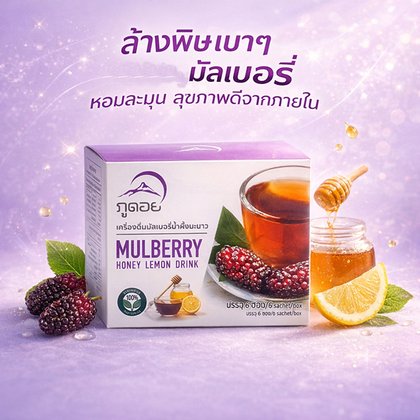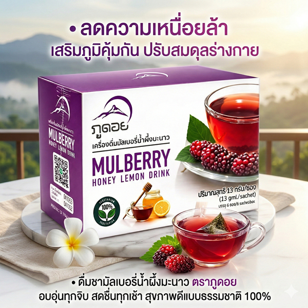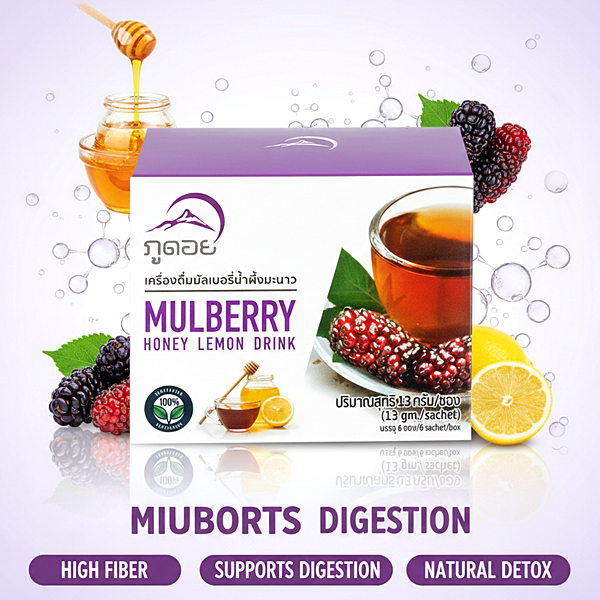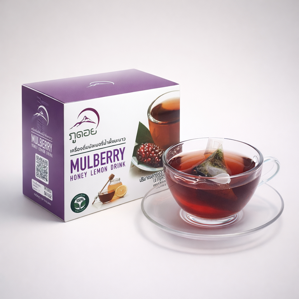ชาสมุนไพรลูกหม่อน มัลเบอรี่ น้ำผึ้งมะนาว ตราภูดอย เครื่องดื่มสุขภาพ ไม่มีน้ำตาล ชะลอวัย ดีท็อกซ์ธรรมชาติ