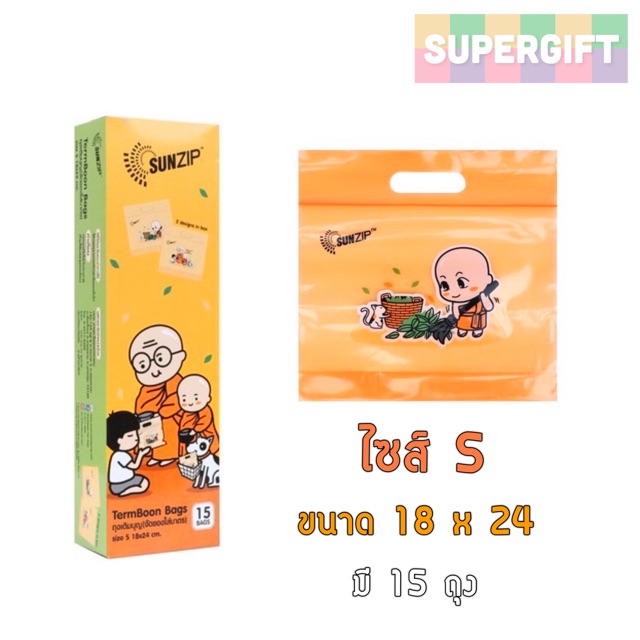 SUNZIP ถุงซิปเติมบุญ (มี 3 ขนาด) สำหรับจัดของใส่บาตร ถุงสังฆทาน Food Grade ปลอดภัยต่ออาหาร