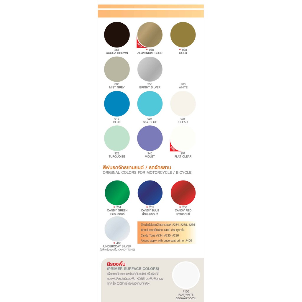 สีสเปรย์ อเนกประสงค์ kobeโกเบ TOA สะท้อนแสง แคนดี้โทน กัลวาไนซ์ สีทอง โครเมี่ยม รองพื้น
