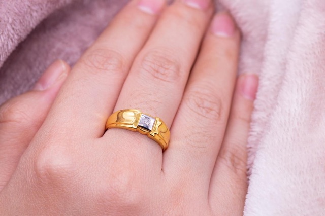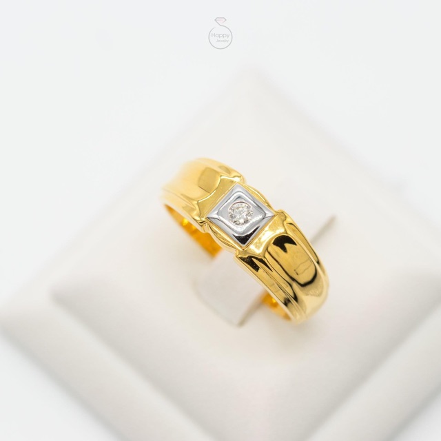 Happy Jewelry แหวนเม็ดเดี่ยว ใส่ได้ทั้งชายและหญิง เพชรแท้ทองแท้ 9K 37.5% ME552 ฟรีกล่องโบว์ 🎀