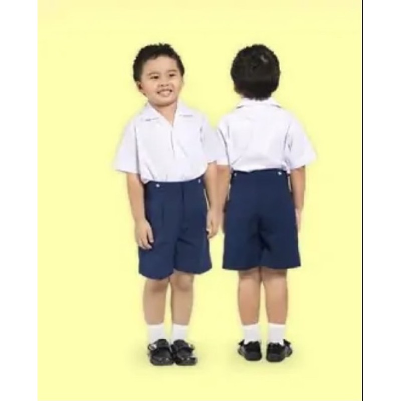 ชุดอนุบาลชาย ปักชื่อ+ตัวย่อโรงเรียนฟรี แบบกระดุม ราคาประหยัด (ได้ทั้งชุด) สีน้ำเงิน