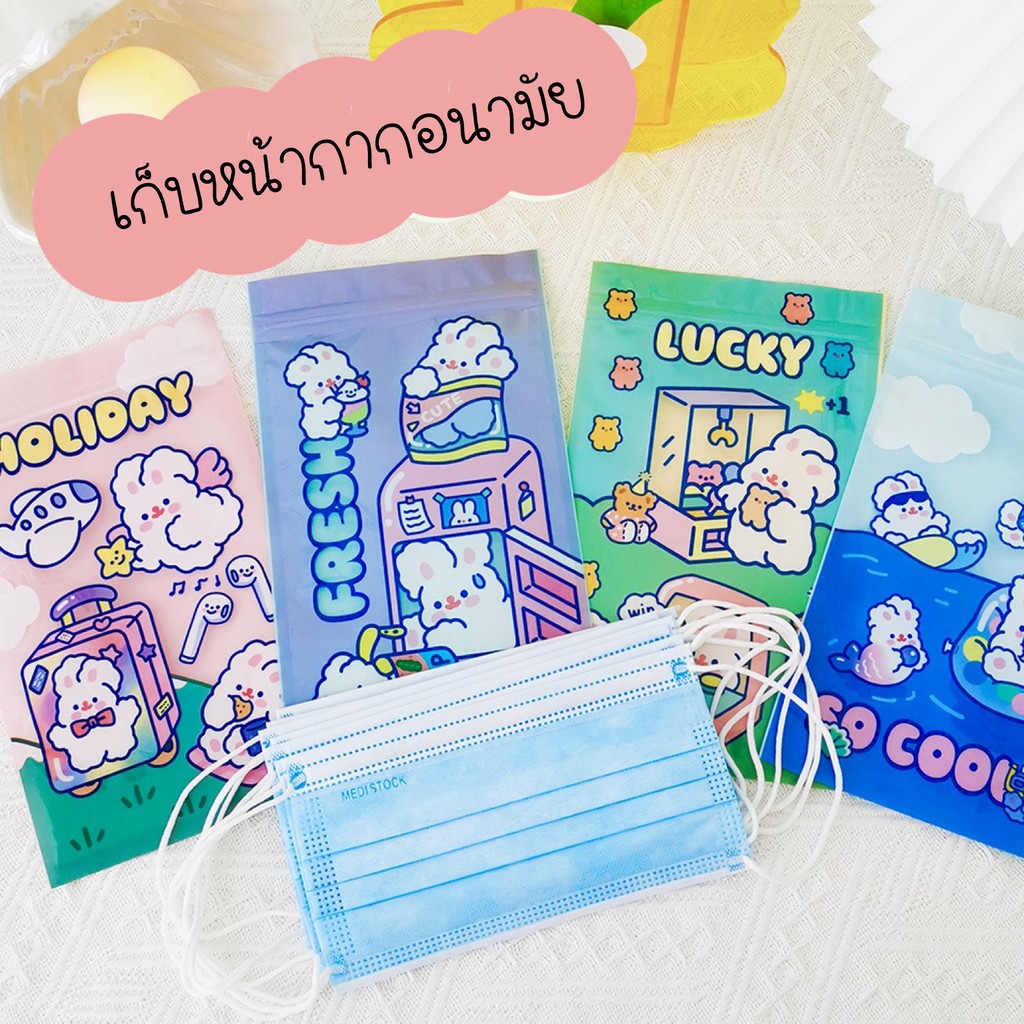 (พร้อมส่ง🇹🇭) ถุงซิปล็อค zipper bag ซองเก็บหน้ากากอนามัย ซองใส่ของ Bentoy กันน้ำ รุ่นน้องกระต่าย Fluffy Rabbit