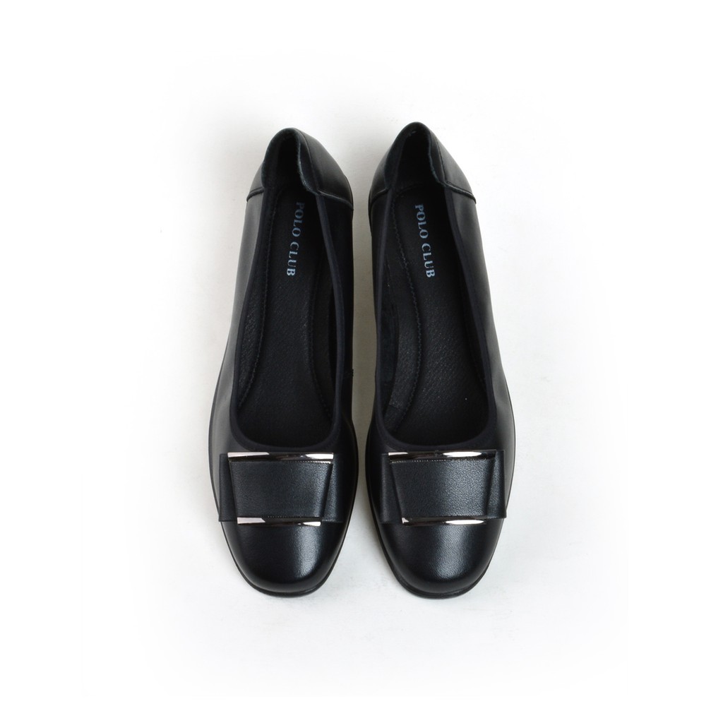 POLO CLUB รองเท้าหนัง รุ่น AG-1835 สีดำ | รองเท้าคัดชูผู้หญิง สูง 2 นิ้ว สูง 1.5 นิ้ว