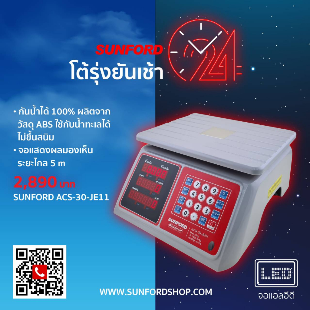 เครื่องชั่งดิจิตอล SUNFORD ACS-30-JE81 กันน้ำ 100% จอ LED 30 กิโลกรัม ละเอียด 10 กรัม