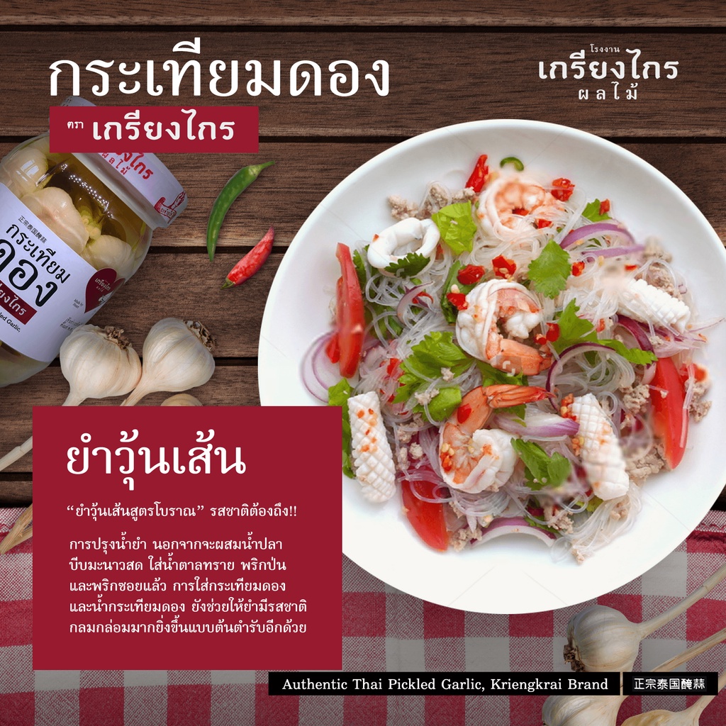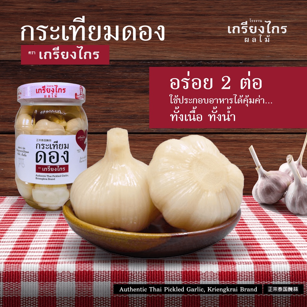 กระเทียมดอง ตราเกรียงไกร เจ้าเก่า 40 ปี ใช้กระเทียมไทยแท้ ๆ ในการดอง