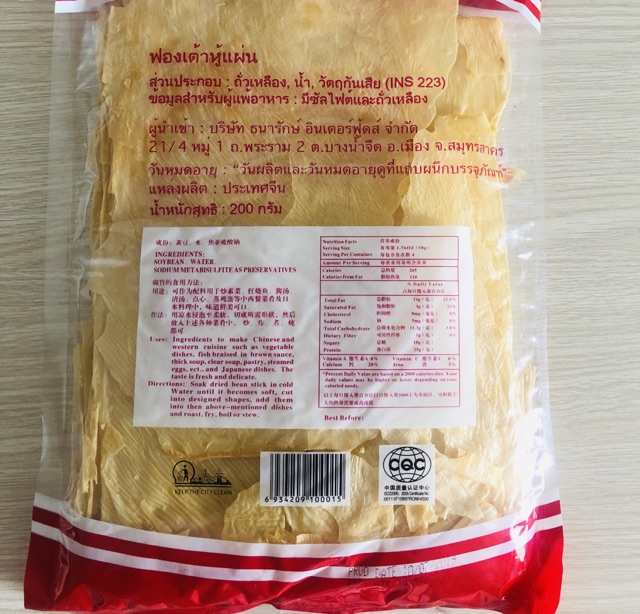 F11 ฟองเต้าหู้แห้ง เต้าหู้แผ่น ( 腐竹片 ) ขนาด 200g ฟองเต้าหู้แผ่นใช้สำหรับประกอบอาหารได้หลากหลายเมนู