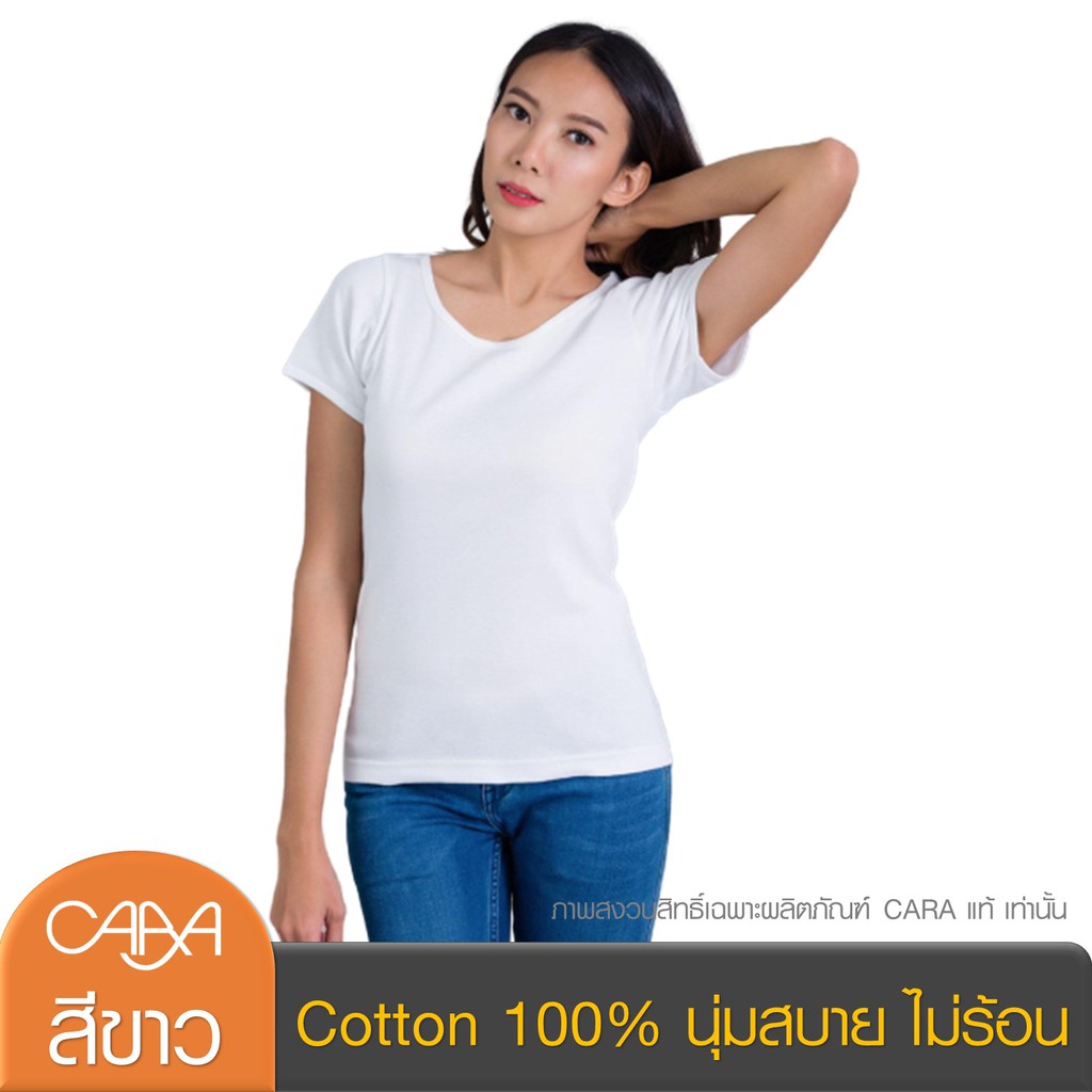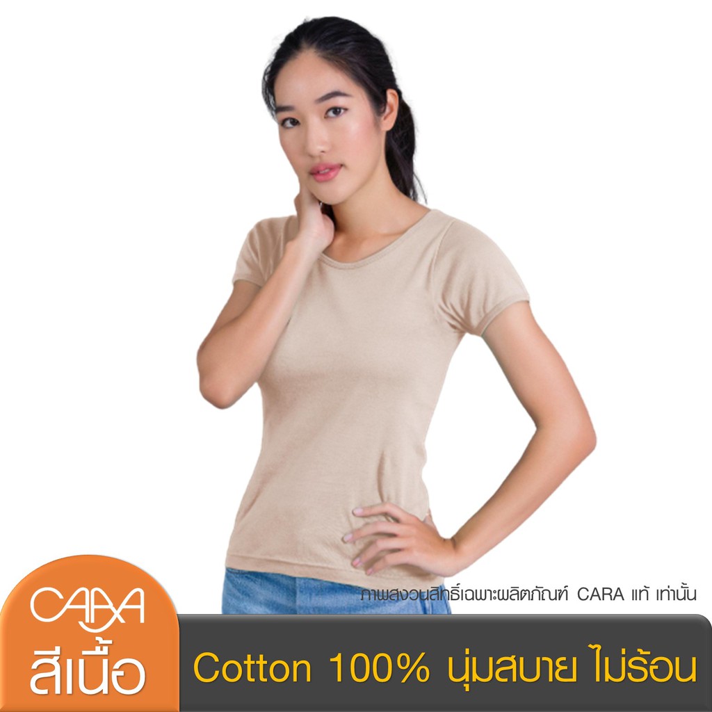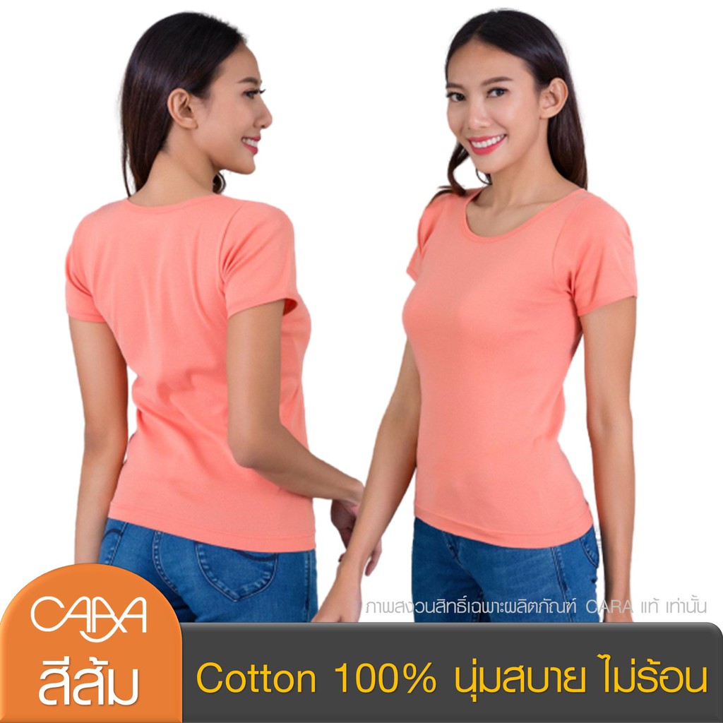 CARA คาร่า เสื้อยืดผู้หญิง เสื้อยืดสีพื้น คอกลม แขนสั้น เอวเข้ารูป ผ้า Cotton 100% นุ่มสบาย ยืดหยุ่นสูง 7 สี CVN-PAA001
