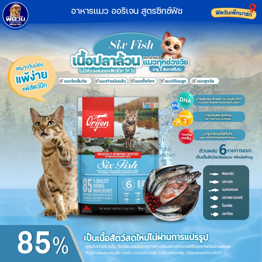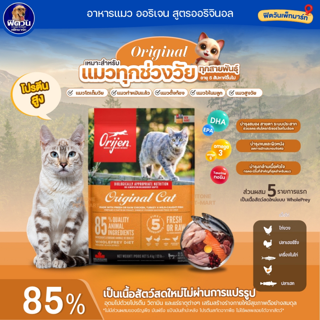 อาหารแมว Orijen แมวทุกสายพันธุ์ ขนาด 1.8 กิโลกรัม{อาหารแมวเม็ด}