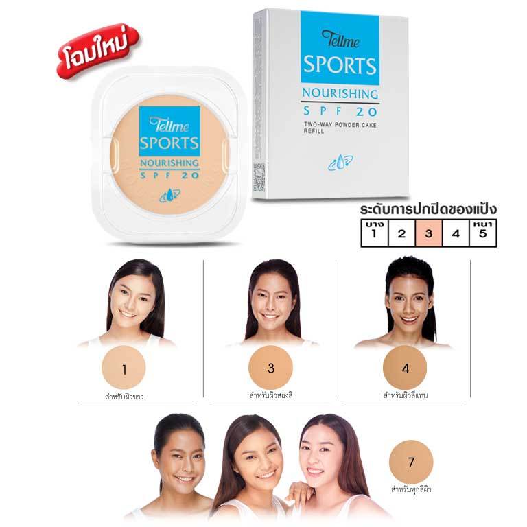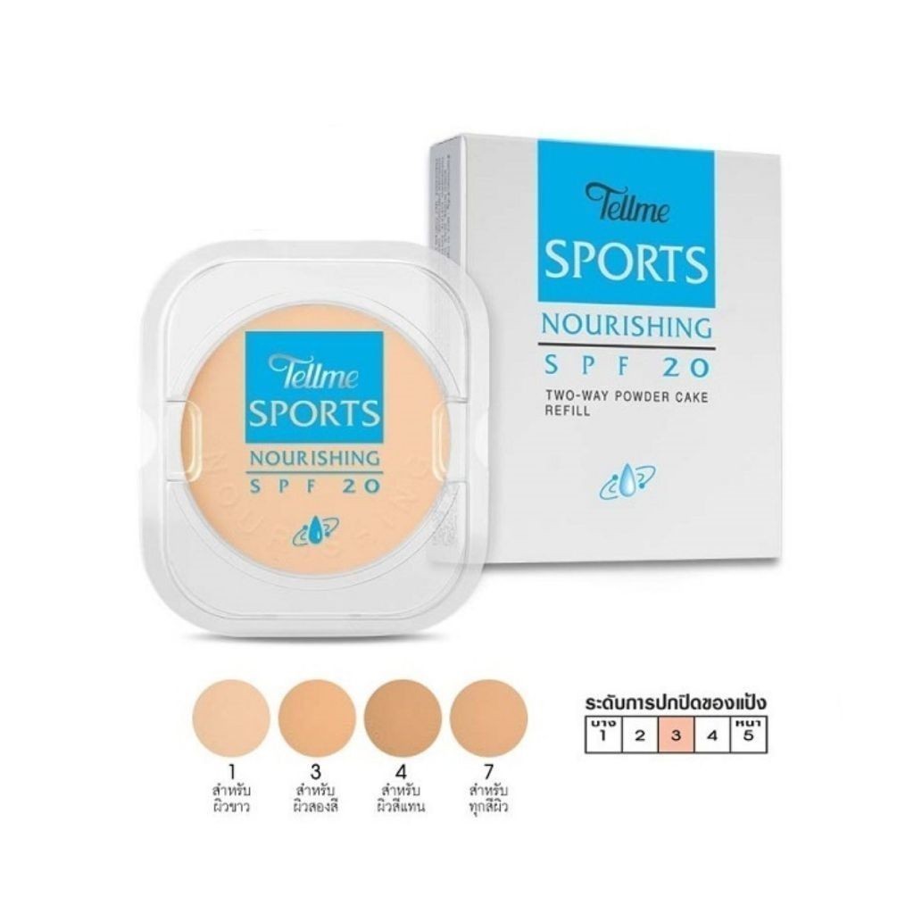 Tellme Sports Nourishing two-way powder cake SPF20 แป้งเท็ลมี แป้งพัฟ สปอร์ต นอร์ริชชิ่ง ทูเวย์พาวเดอร์เค็ก รีฟิล (ฟ้า)