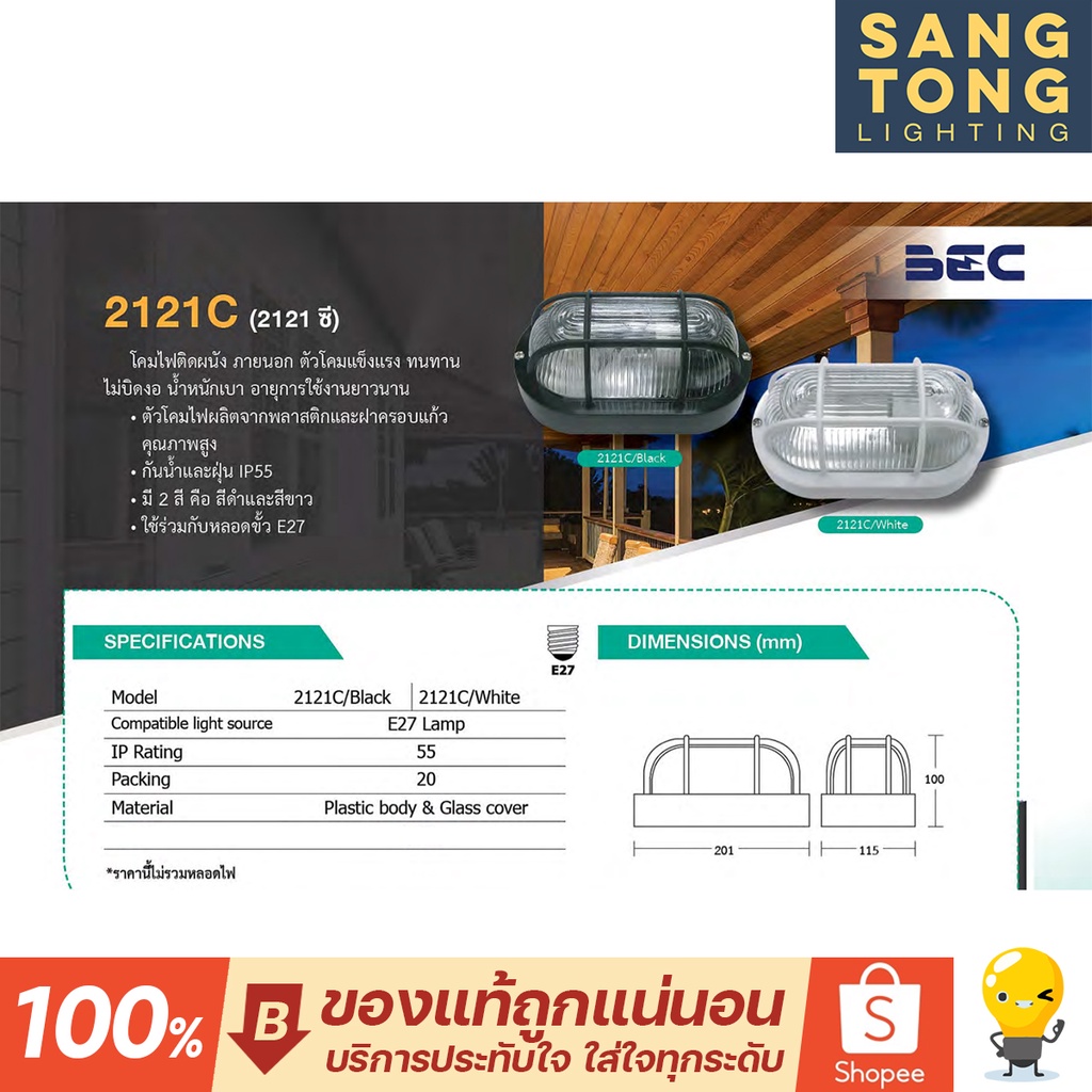 โคมไฟติดผนังภายนอก IP55 ขั้วไฟ E27 รุ่น 2121C ยี่ห้อ BEC