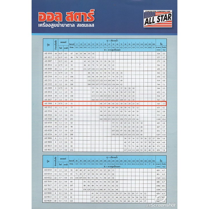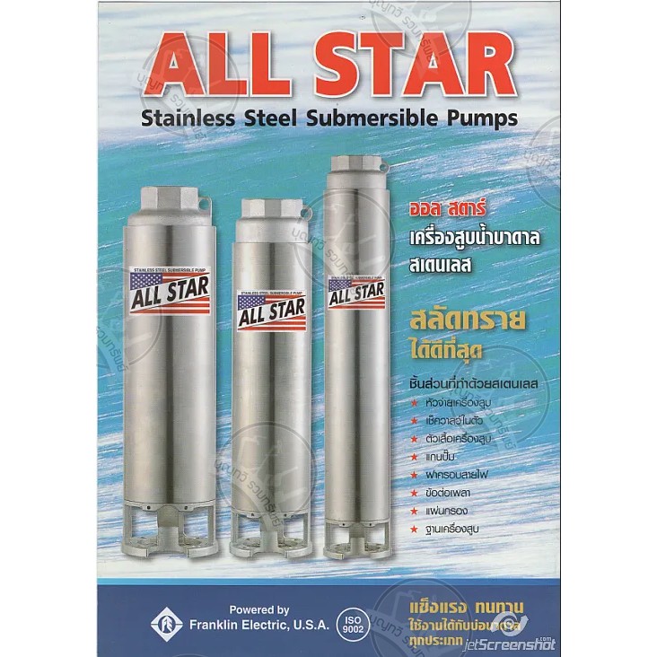 ปั๊มบาดาล Franklin 1 HP 1 1/2 นิ้ว 8 ใบพัด ลงบ่อ 4นิ้ว รุ่น AS-3508 ALL STAR (แฟรงกิ้น) พร้อมกล่องคอนโทรล