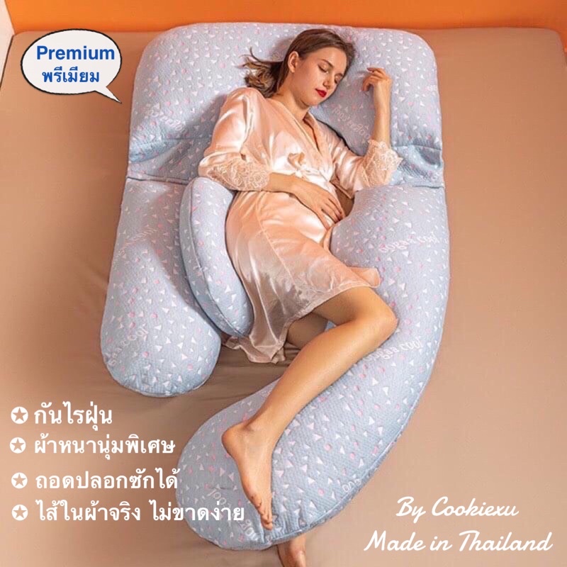Cookiexu หมอนคนท้อง หมอนรองครรภ์ รุ่นปรับ-ถอดได้ กันไรฝุ่น ผลิตในไทย แถมหมอนรองหลัง (GL)