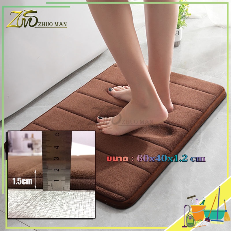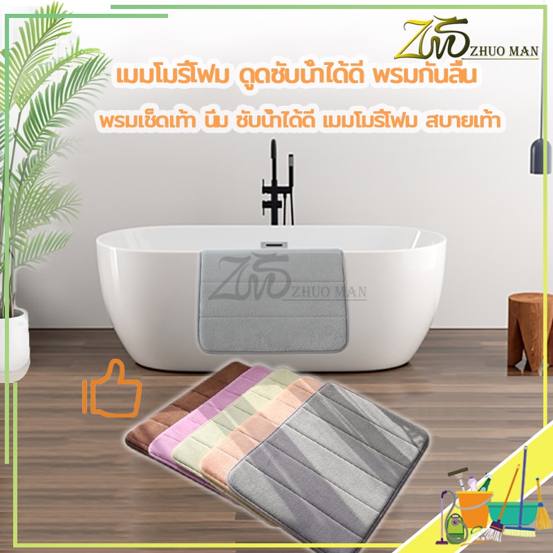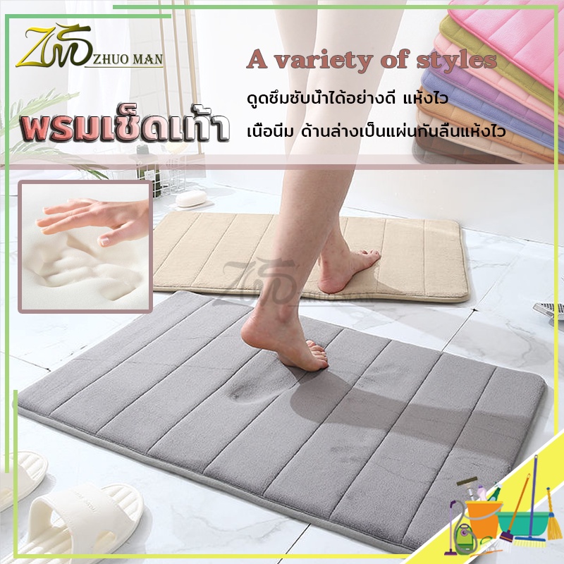 ผ้าเช็ดเท้า พรมเช็ดเท้าห้องน้ำ เมมโมรี่โฟม ดูดซับน้ำได้ดี เนื้อนิ่ม ด้านล่างเป็นแผ่นกันลื่นแห้งไว