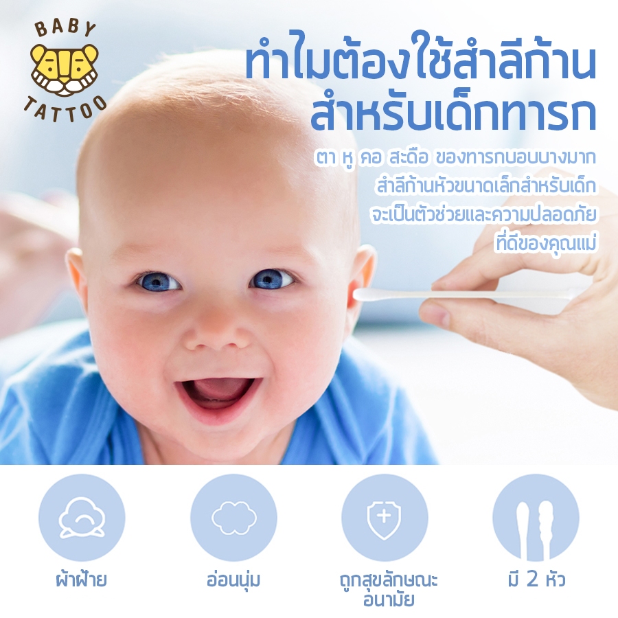 BABY TATTOO คอตตอนบัต หัวเล็ก 1 กล่อง 200 ชิ้น (3 กระปุก) สำลีก้าน สำลีก้านกระดาษ