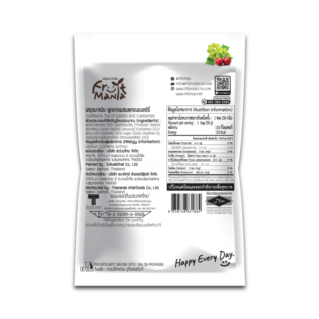 FruitMania ฟรุตมาเนีย ลูกเกดผสมแครนเบอร์รี่ 30 กรัม Mix of Raisins And Cranberries