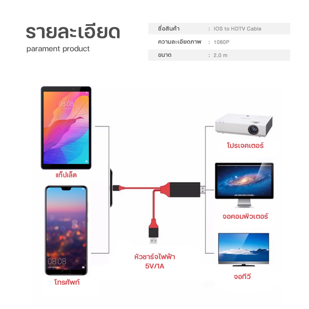 HDTV for IOS สาย for IOS To HDMI TV มือถือ เชื่อมต่อกับทีวี for IOS แท้1080P #A-036