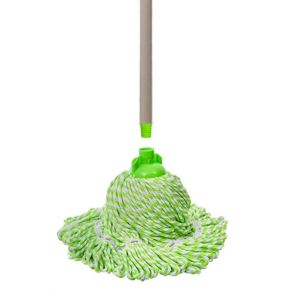 GreenHouse ม็อบจุกผ้าลายเย็บชายผ้า Microfiber (เขียว/ขาว) ด้ามยืดหดได้ 60 - 135 ซม.