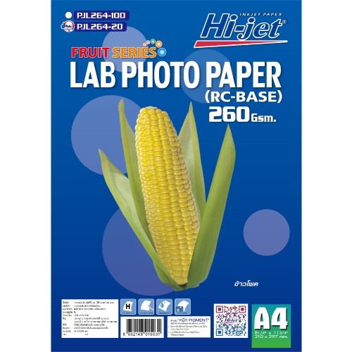 Hi-jet กระดาษโฟโต้ ผิวกึ่งมันกึ่งด้าน (มีลายน้ำที่ด้านหลัง)Inkjet Fruit Series Lab (Backside-coated) 260 แกรม A4 20 แผ่น
