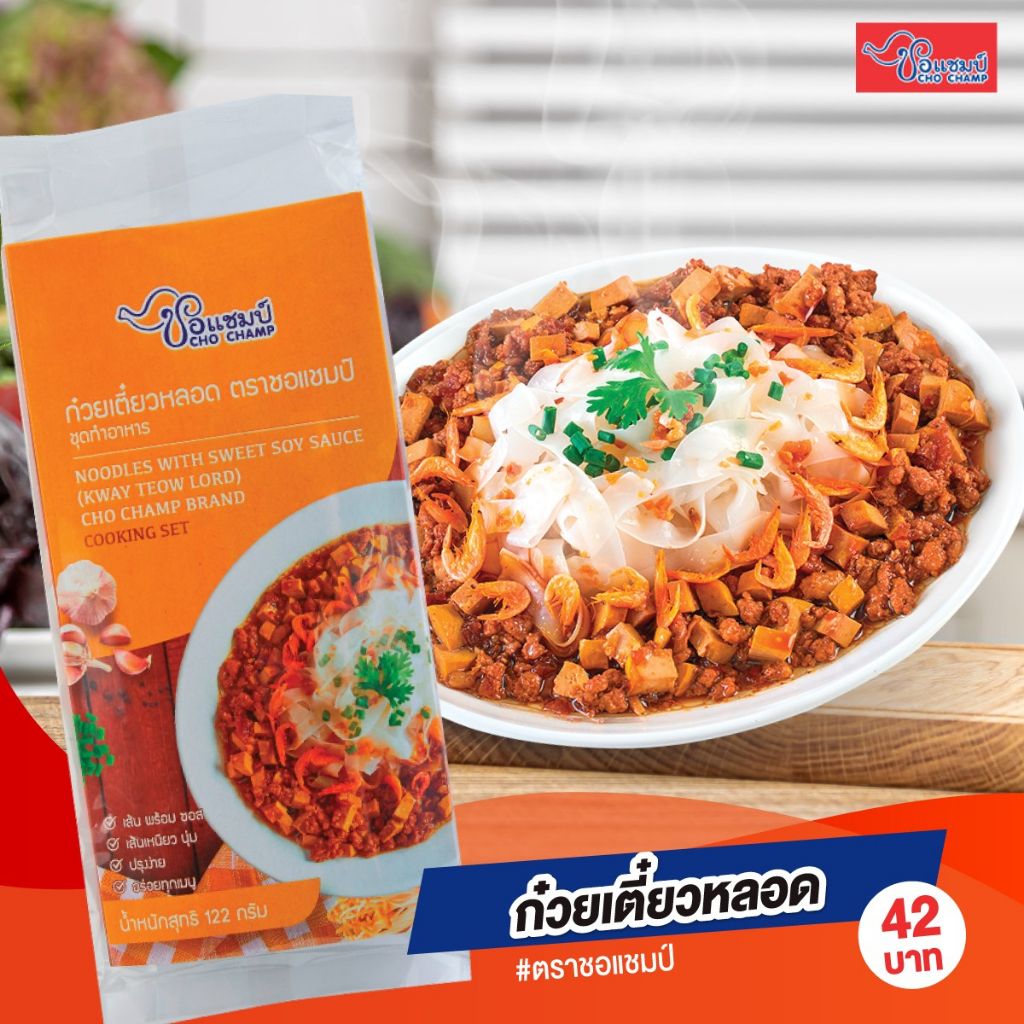 ก๋วยเตี๋ยวหลอด ตราชอแชมป์ (3ซอง) เส้นใหญ่เหนียวนุ่ม ซอสเข้มข้น ทำง่ายใน 15นาที