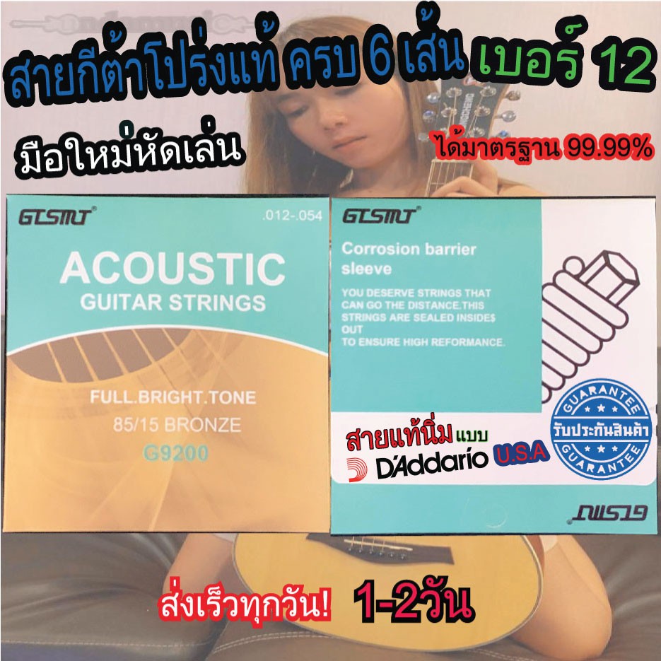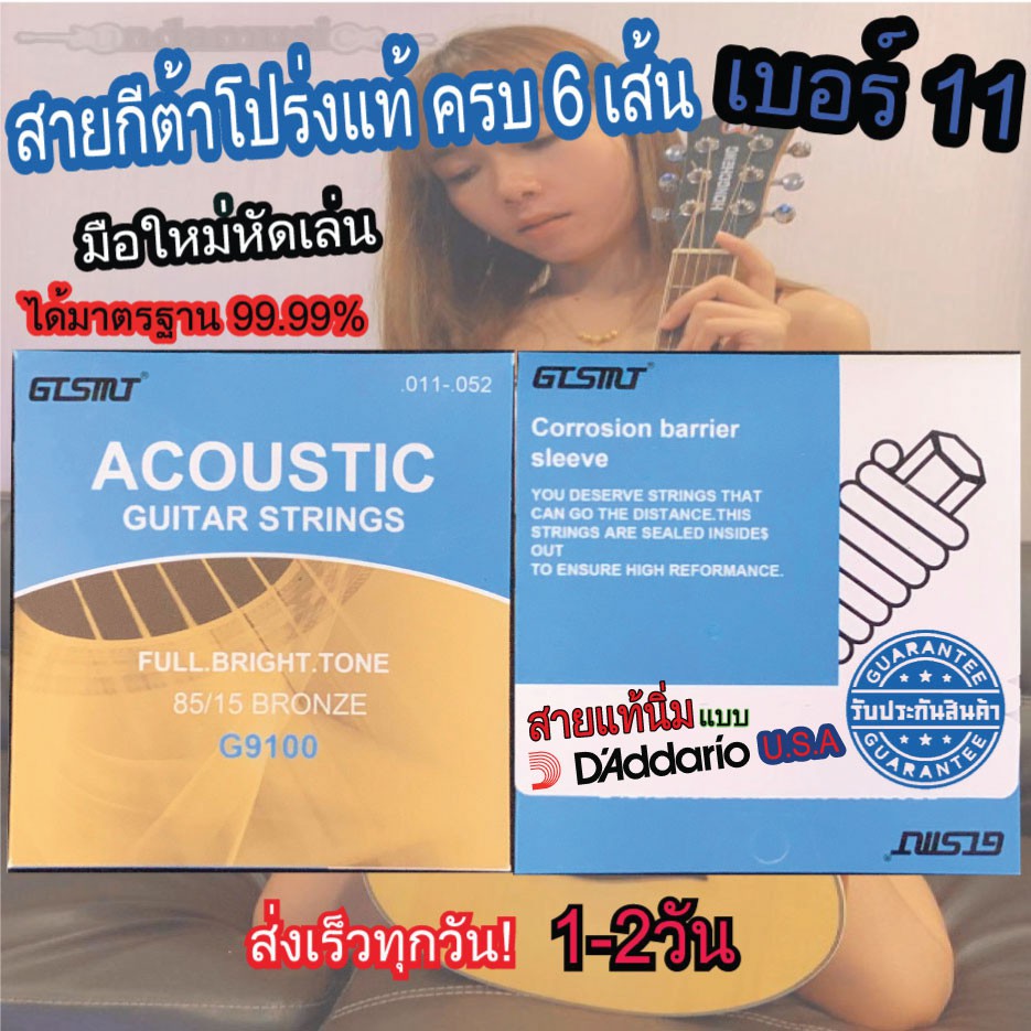 สายกีต้าโปร่งของแท้ นิ่ม แบบ Alice เบอร์11 เบอร์12 และ เบอร์10 Civin G10 สายแท้ไม่มีของเรียนแบบ มือใหม่