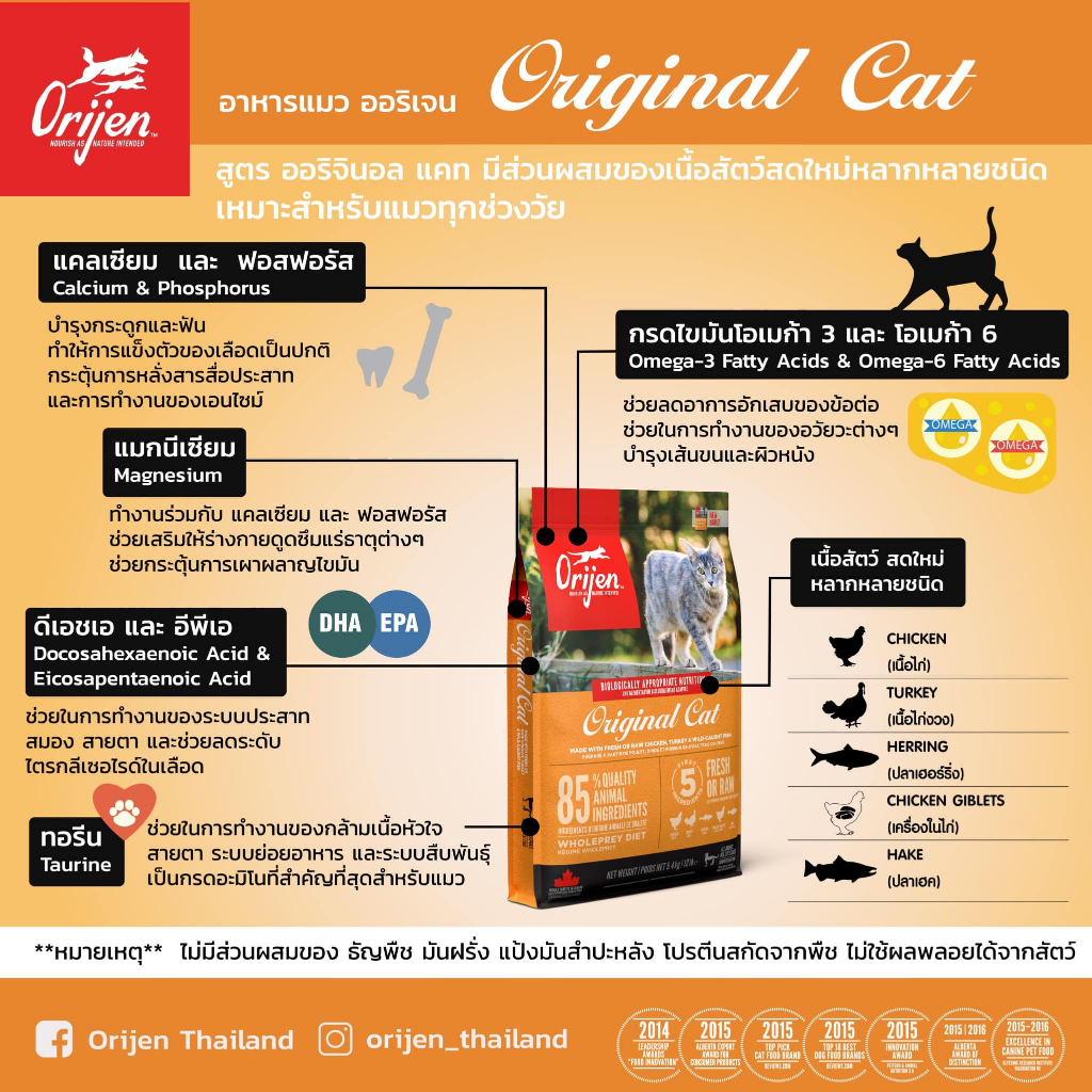 Orijen (Cat) - โอริเจน อาหารสำหรับลูกแมวและแมวโต Cat & Kitten | Six Fish | Fit & Trim 340g