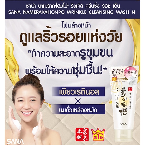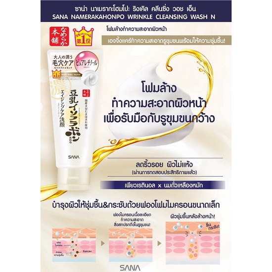 SANA NAMERAKAHONPO WRINKLE CLEANSING WASH N 150 G / โฟมทำความสะอาดผิวหน้าและเครื่องสำอาง ลดเลือนริ้วรอย