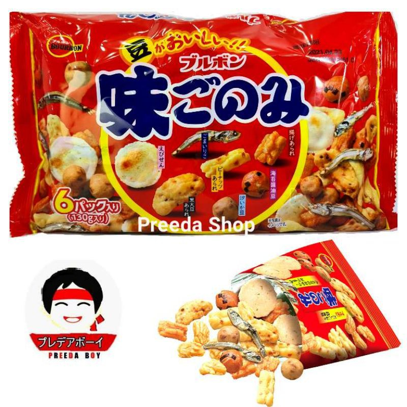 Bourbon Ajigomi Family 92 g. ข้าวอบกรอบ และ ถั่วผสมปลาตัวเล็ก รวมรส 7 ชนิด เซมเบ้ จากญี่ปุ่น (1ถุง 5 ซอง)