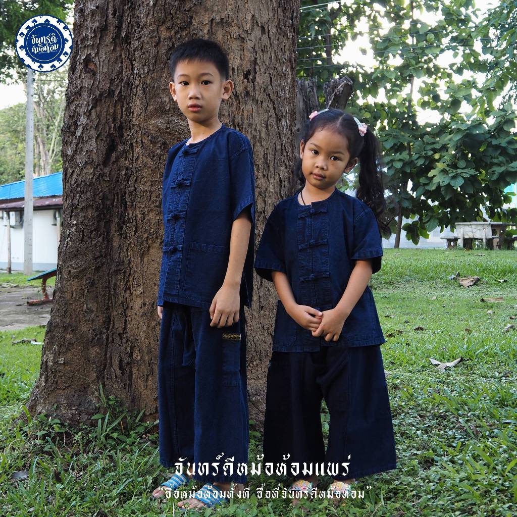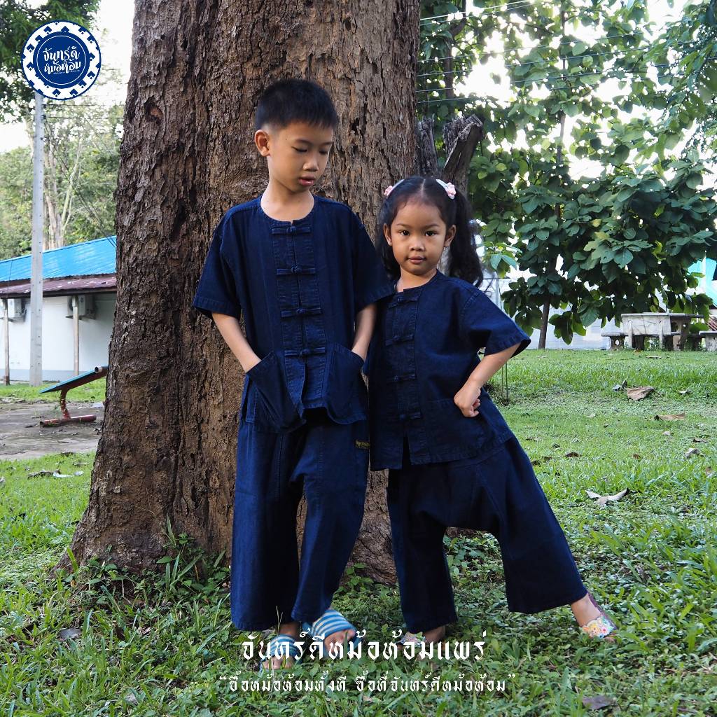 (จันทร์ดีหม้อห้อม) ชุดหม้อห้อมเด็ก เสื้อ+กางเกง