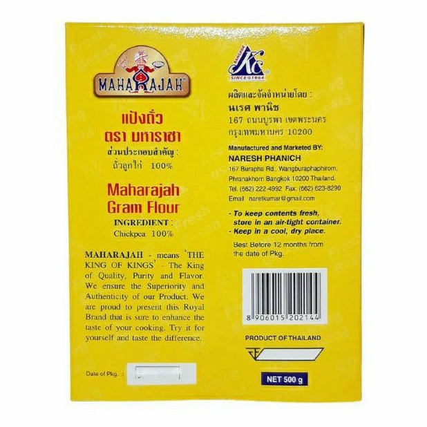 แป้งถั่วลูกไก่ 500 กรัม ถั่วลูกไก่ 100% / Besan Flour / Gram Flour Chickpea 100% ตรา เคซี KC