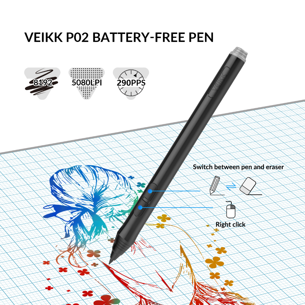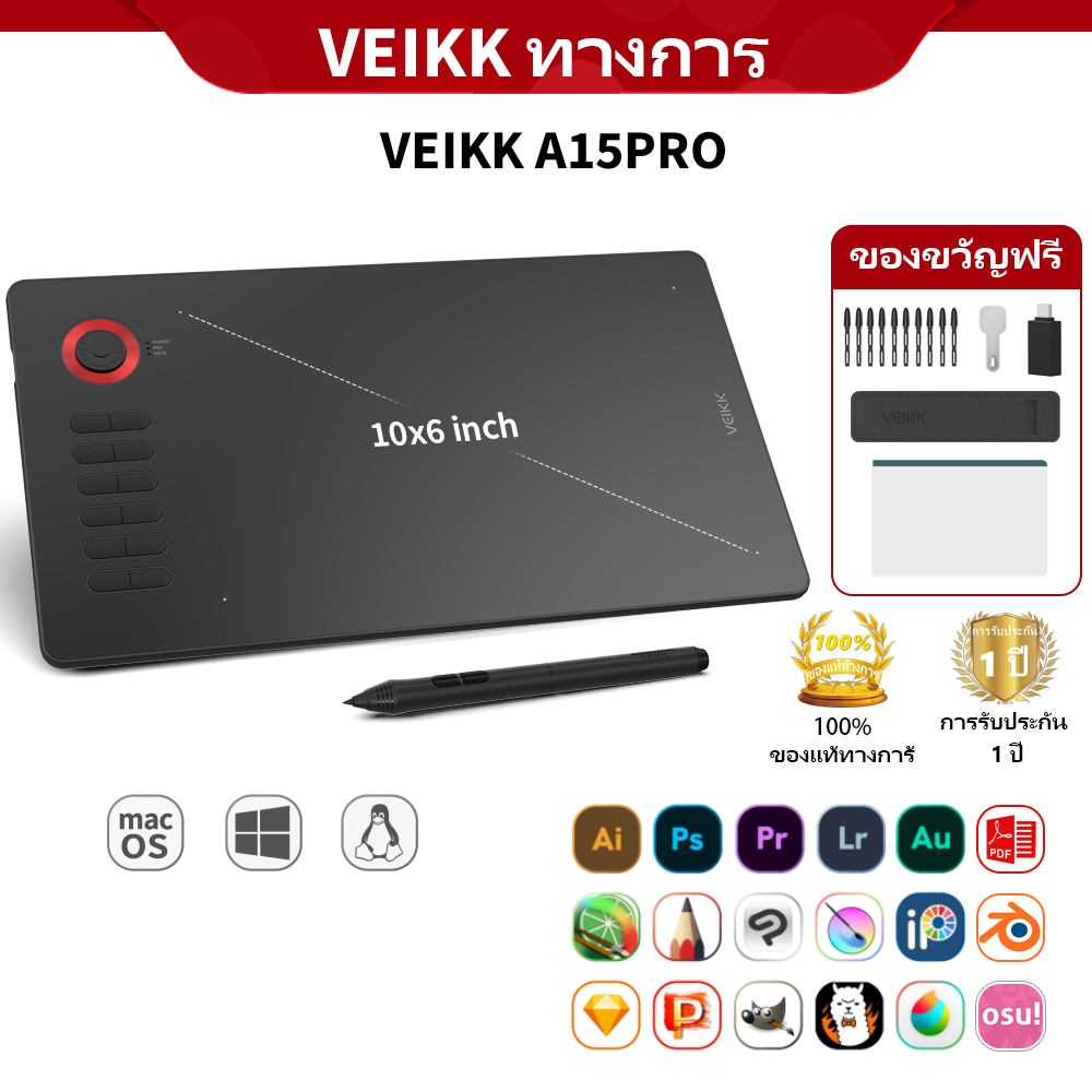 ส่งเร็วจากไทย (VEIKK's Official store) VEIKK เมาส์ปากกาดิจิตอล รุ่น A15PRO สำหรับ แท็บเล็ต วาดภาพ พิมพ์แบบเต็มจอ ขนาด 10x6 นิ้ว ความไวแรงดัน 8192