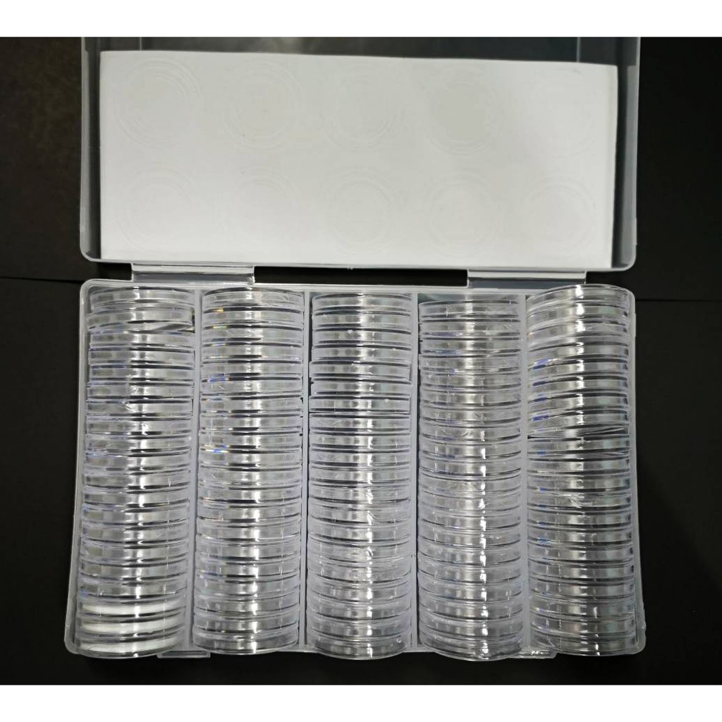 ตลับใส่เหรียญ 30 มม. มีโฟมปรับขนาด 20-30 มม. 100 ตลับ พร้อมกล่อง